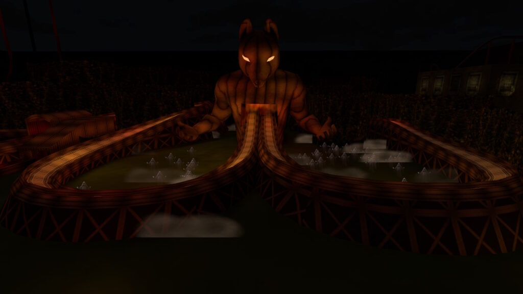 - Katchy’s Review: This is my favorite theme park world in all of VRC, hands down. When I saw that new rides were added I was extremely excited. I love the spooky aesthetic and the rides are all themed differently and function very well. The fact that it gets updates and isn’t just left to rot makes it even more special.