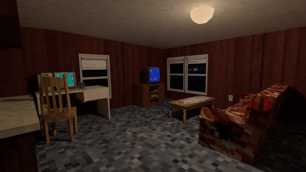 I actually really liked this world, once you get beyond the potential of a soft-lock bug that prevents you from continuing in the beginning (this is claimed to be fixed.) The PS1 style graphics aren’t too wiggly (as they have been in other worlds) and the overall aesthetics are pretty good. This is another world where the horror involves the player from a personal perspective. There is a bit of technological nostalgia in the beginning that I enjoyed seeing and interacting with, so it would be great to see that show up in other worlds down the line.