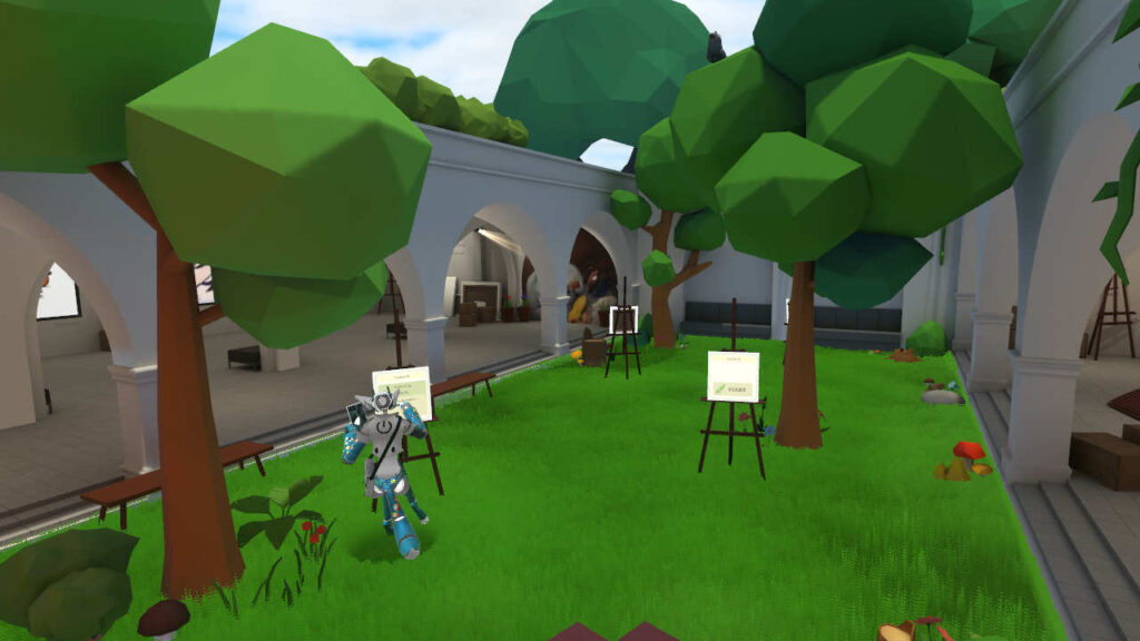 - Katchy’s Review: Finally, you can paint in VR with friends! The painting feels pretty real and natural and there are a lot of options to choose from with your palette and canvas size. You can also take pictures as a reference to paint over which is a neat touch. I’d like to see a way to import pictures from desktop, but I’m not sure it’s possible, just something I’d like. The creator also posts pictures the community has done which is nice.