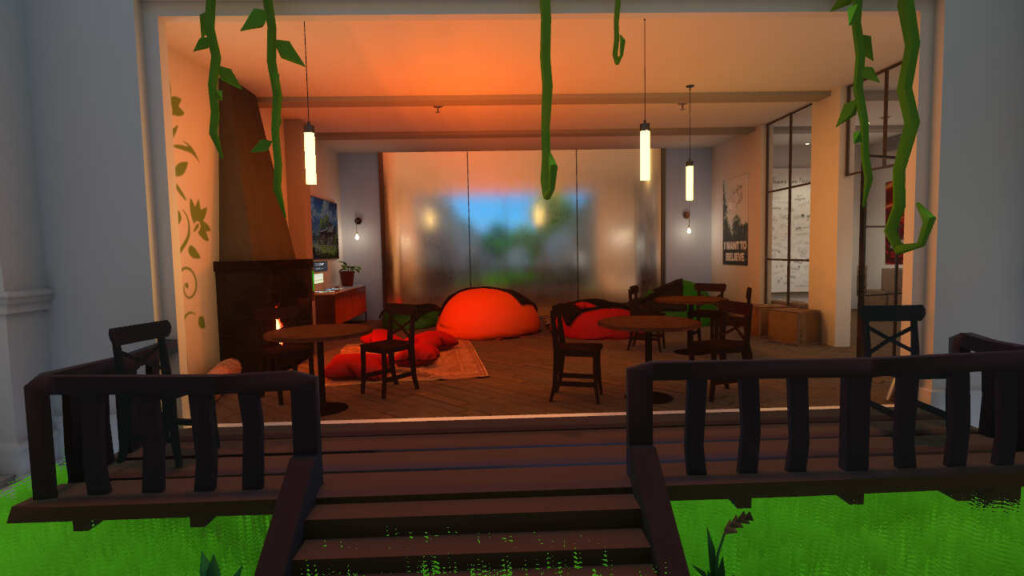 - Ondanya’s Review: A very cute painting world. The whole atmosphere is very calm; perfect for painting by yourself, with a few friends or even on a date. I really like the cute little birds in the world. May not have as many canvases as other painting worlds I have been in, but the canvases here are much nicer than other ones I have used. Plus, there is a mural of Bob Ross (need I say more?)