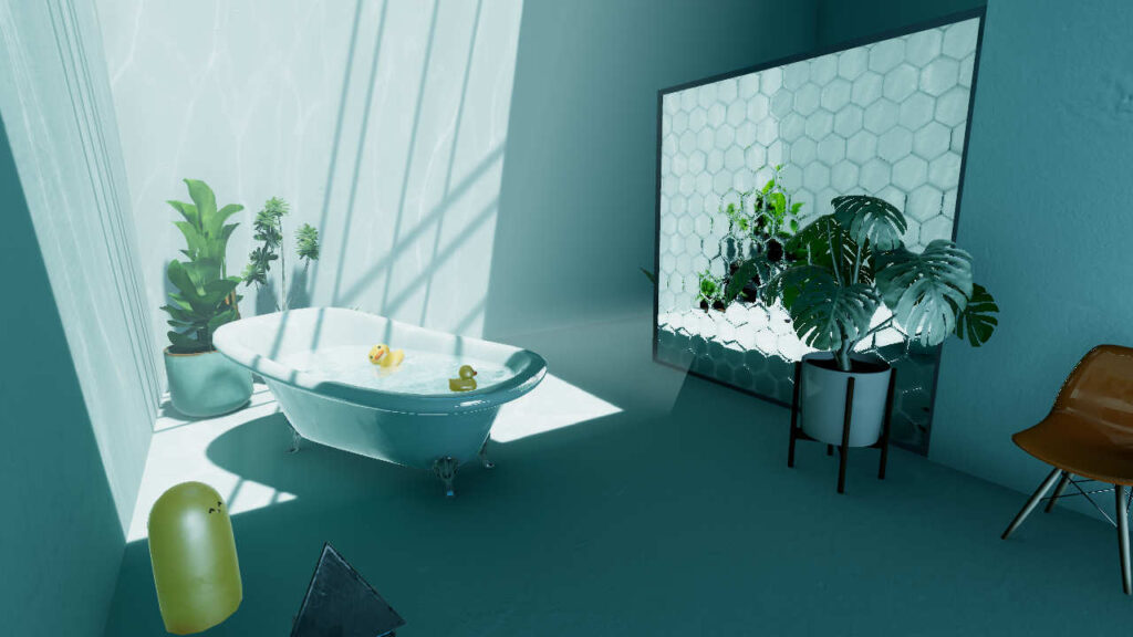 - Katchy’s Review: It’s pretty but -yikes- does it run badly. I’m confused how such a small world is so badly optimized. Points for being able to drop items in the bathtub and watch them plop and bounce around though.