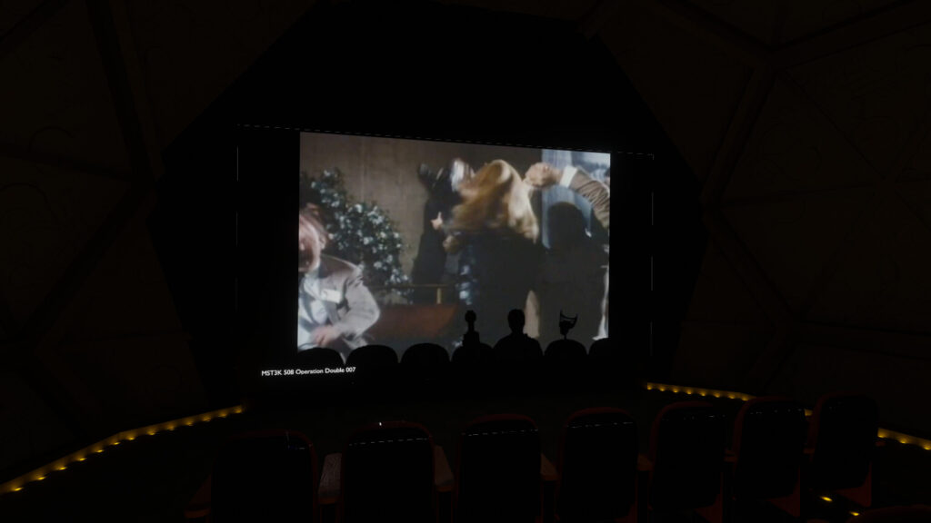 - RobertWK’s Review: This is essentially MST3K but you can tell that the author, Cekay, put in a ton of work to make this labor of love. Everything in here is pretty close to what the Mystery Science Theatre 3000 set would look like including the door sequences and the main lobby. For me, this movie viewing world earns high style points even though it’s only just that.