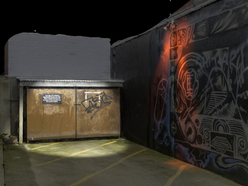 A Photogrammetry world of a trash dumpster.