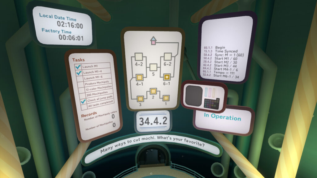 - Katchy’s Review: I didn’t think we’d be reviewing a product of a corporation, but here we are! Mochipoly Factory is an exciting rhythm game where the goal is to fire up all the parts of the factory, with each piece adding an instrument to the overall music of the world culminating in a rather silly dance party at the end. If you’re looking for something fun to play with friends, this world won’t disappoint, but be wary that those not used to rhythm games might have a tough time getting all the factory parts activated.