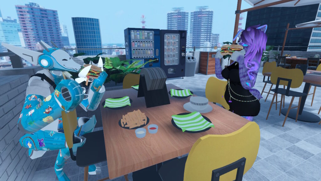 - RobertWK’s Review: There aren’t many food-based worlds in VRC, and some of them that have virtual food elements are either outdated or iffy about their implementation (possibly due to the SDK update/Unity update.) Thankfully, Soul’s Maid Café has a range of food widgets in the world to “try.” Eating food in VRC is less about a tactile functional experience, but more about the visual and the suggestive experience. Do hamburgers look like hamburgers? Do sauces and drinks look like fluids? In most cases in Soul’s, the answer is yes. The only unusual part of this world that should get an update are the mayo and the ketchup.