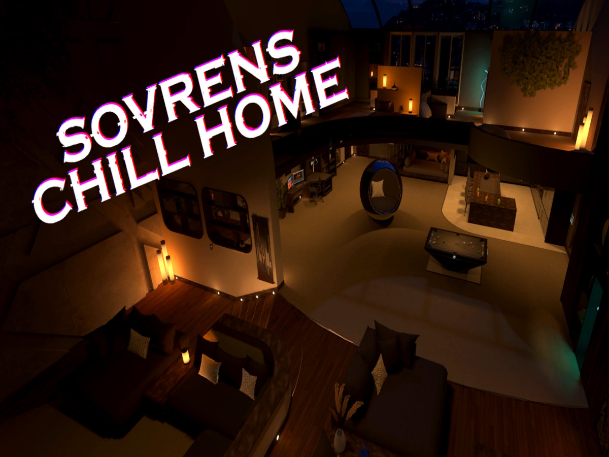 Sovren’s Chill Home is a classic chill world that makes you feel like you’re at a house party, complete with screens, games, and hot tubs.