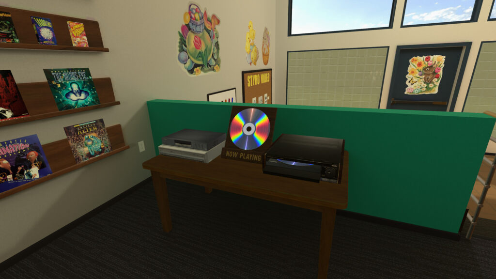- RobertWK’s Review: Styro Video is a specific kind of place. It’s not quite a video store, but is also a community center of sorts. It has a “video club” kind of vibe where there are DVD and VHS players you can insert media into. Many of the regular videos are older 3D graphics demos similar to “The Mind’s Eye” that came out in the 80s and 90s to showcase what the cutting edge of computer graphics was at the time. Throughout the year Styro Video gets seasonal and holiday updates and different media is typically available during those times. If you’re looking for lost graphics media of this type, then give Styro Video a visit.